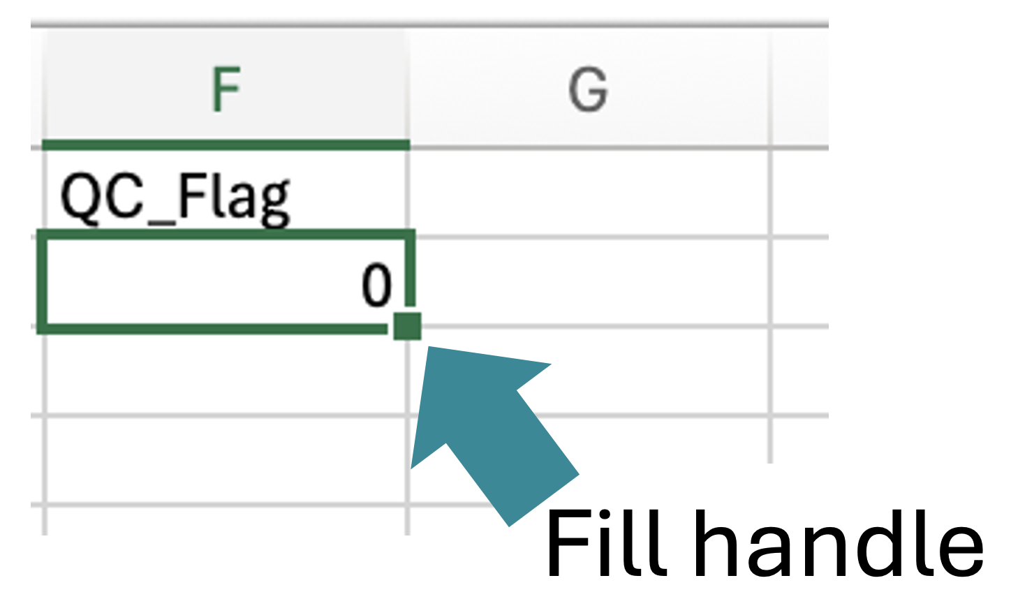 Double-click the fill handle (small square at bottom-right of cell; see figure below), which will copy formula down to all rows
